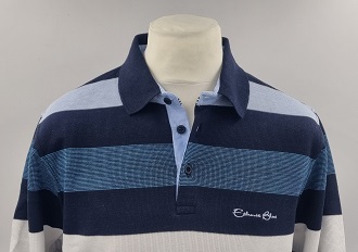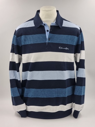 Pull col polo rayé Marine, Blanc, Bleu Ciel et Bleu chiné