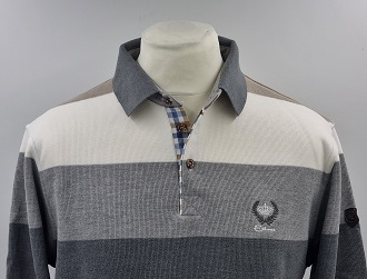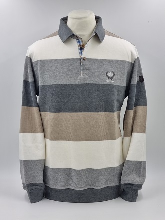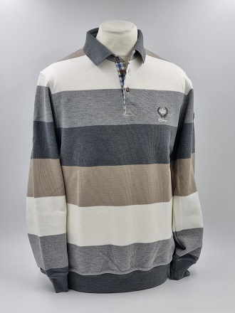 Pull col polo rayé Blanc cassé, Gris clair, Gris et Beige