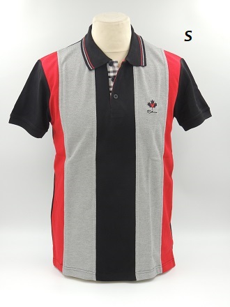 Polo manches courtes avec bandes verticales Noir, Gris clair et Rouge
